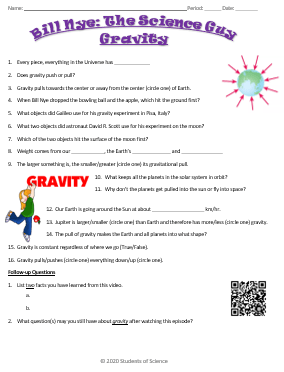 To preview this answer key, click on the file menu and select print preview. Have you ever jumped and landed? The gravitational pull between two objects increases the more the distance between them increases. All of the answers are correct. The acceleration of gravity on earth is_9.8w/52 _weight is measured in units of viwims.